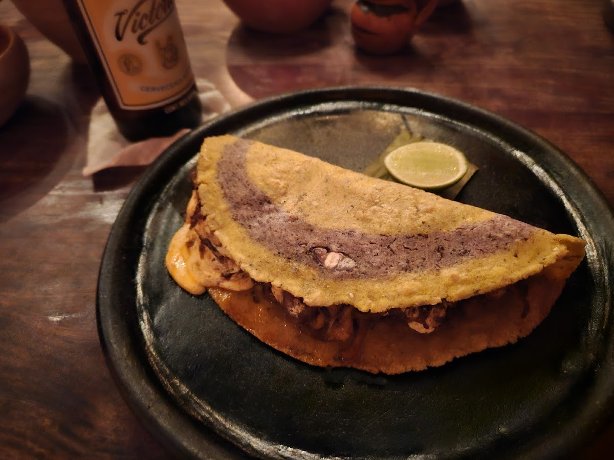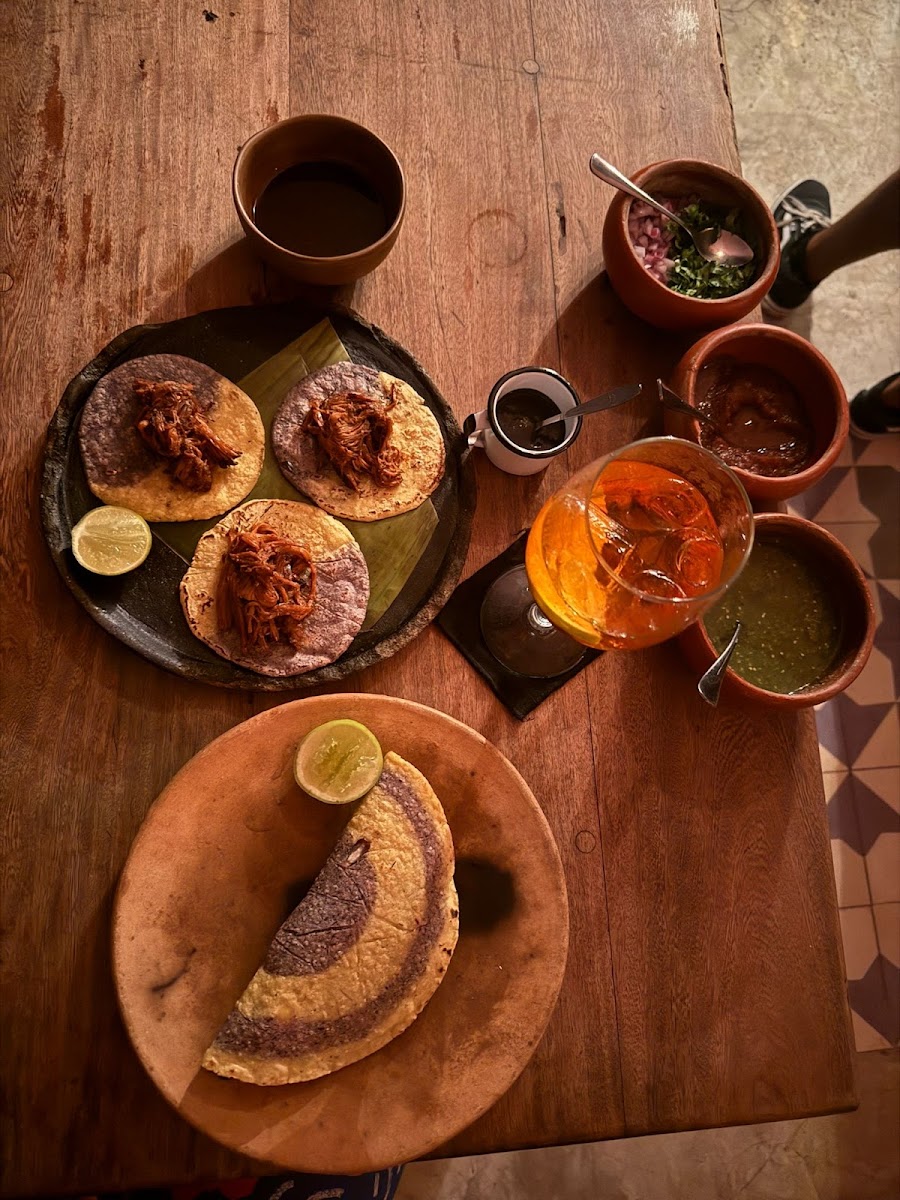 The corn starter was genuinely unbelievable! ——— FOOD Grilled Corn / Probs the best starter I’ve ever eaten. Came with habanero and other condiments Vampiro / The meat was so tender with great layers for flavour Aubergine and Huitlacoche Taco / Huitlacoche is a fungi with a distinct flavour profile - do try as it was the only place that served it Rice pudding / It was more than rice pudding with creme brûlée like elements. I feel like they are so confident in their starters and main that they can undersell the pudding knowing that you’ll still get it - which is exactly what we did lol ——— DRINKS Don’t remember the full names but we really enjoyed having non-alcoholic options that were made in the restaurant. I had a creamy blue corn drink and my shady partner had a fruit drink with a lime sorbet. ——— EXTRA It was all so flavourful - never experienced anything like it before. Jorge was our waiter who was friendly, and gave good recommendations. 10/10 would recommend - have already rebooked for next week!